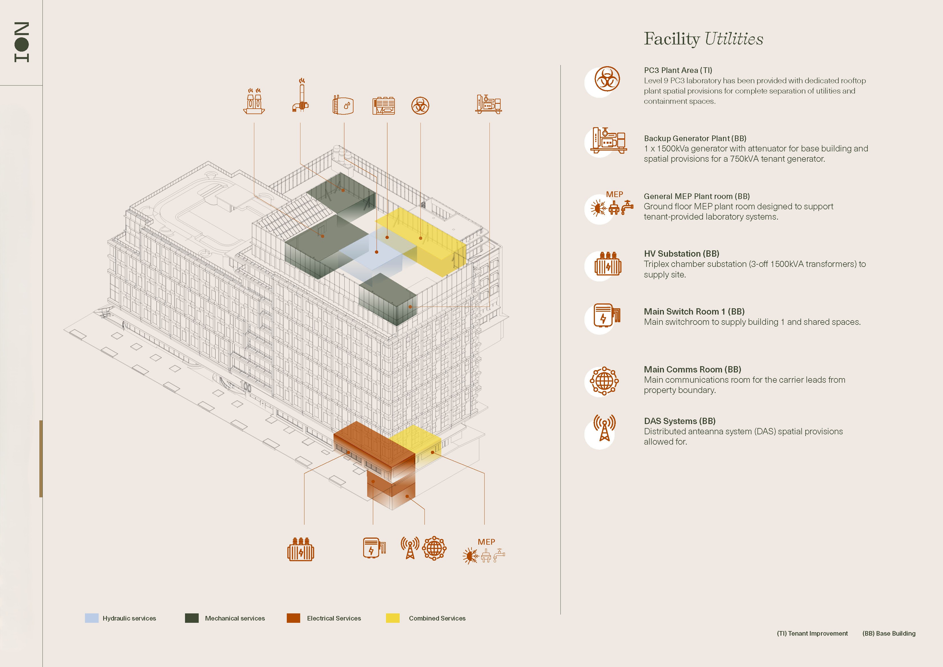 See the full technical overview of ION’s life sciences infrastructure contact our leasing team to discuss how we can configure a space for your research.
